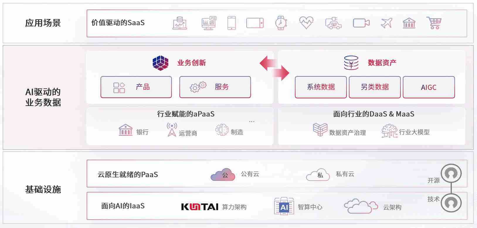 数字时代,,,,围绕企业数字化转型的关键要素,,,,PA视讯数码开创性的提出数云融合战略和技术体系框架,,,着力在云原生、、、数字原生、、AI原生和信创产业上架构产品和服务能力,,,为处在不同数字化转型阶段的快消零售、、、汽车、、、金融、、、、医疗、、、政企、、、、教育、、、运营商等行业客户提供泛在的敏捷IT能力和融合的数据驱动能力,,,构建跨界融合创新的数字业务场景和新业务模式,,,,助力企业级客户建立面向未来的核心能力和竞争优势,,,全面推动社会的数字化、、智能化转型升级。。。。